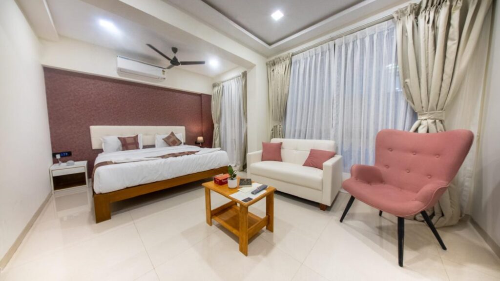 The location is surrounded by some of Goa’s most popular attractions, offering a perfect mix of leisure, culture, and nightlife. Pristine shores like Candolim Beach and Calangute Beach are just a short drive away, ideal for relaxing and water activities. For nightlife lovers, the famous SINQ Night Club offers a vibrant party experience. History and scenic views can be explored at the iconic Fort Aguada, while a touch of spirituality awaits at the revered Shree Shantadurga Temple, making the area rich in experiences for every kind of traveler.